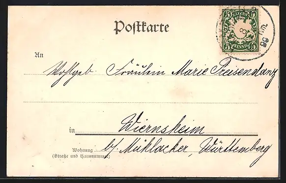 alte Ansichtskarte, gelaufen 1899, Stempelspur, guter Zustand