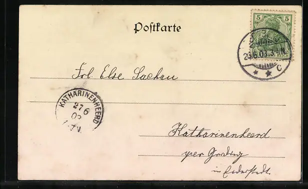 alte Ansichtskarte, gelaufen 1903, guter Zustand