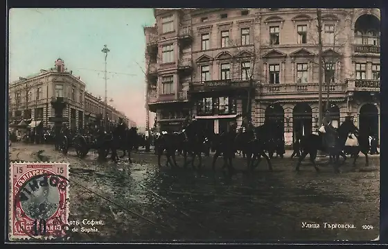 AK Sophia, Belebte Strassenpartie mit Pferdegespann