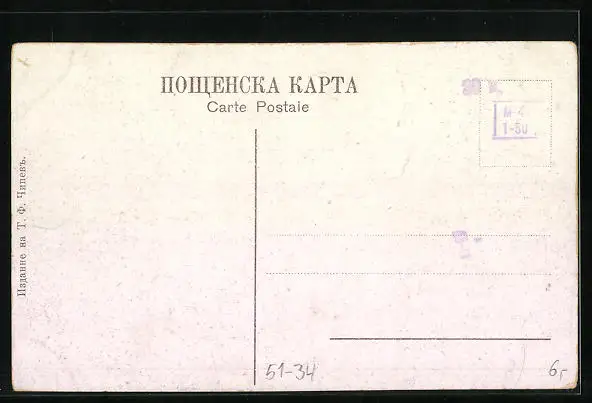 Personenbezogene Daten auf der Rückseite der Karte wurden durch blauen Textmarker unkenntlich gemacht. Die blauen Stellen sind auf die Vorderseite durchgeweicht und wirken sich negativ auf das Postkartenfoto aus