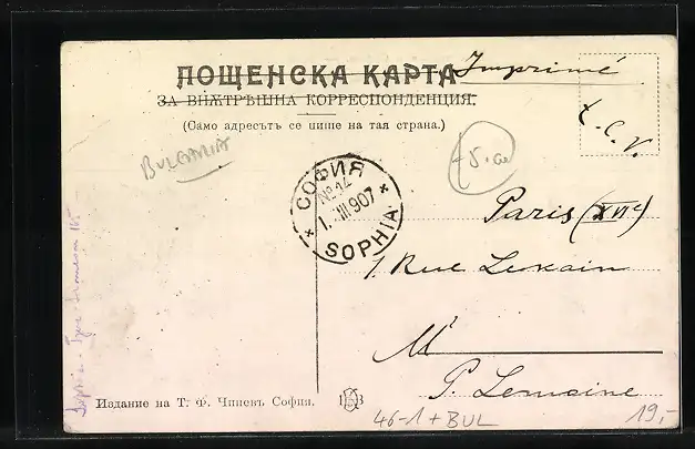 alte Ansichtskarte, gelaufen 1907, Stempelspur, guter Zustand
