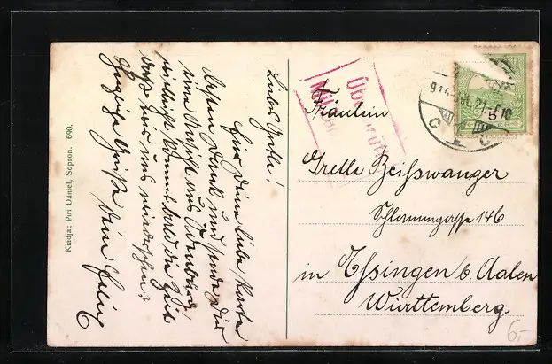gelaufen 1915, Briefmarke entfernt, Eckknick re. unten, guter Zustand