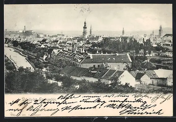 AK Sopron, Ortsansicht mit Kirchturm