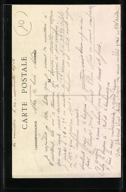 Personenbezogene Daten auf der Rückseite der Karte wurden durch blauen Textmarker unkenntlich gemacht. Die blauen Stellen sind auf die Vorderseite durchgeweicht und wirken sich negativ auf das Postkartenfoto aus