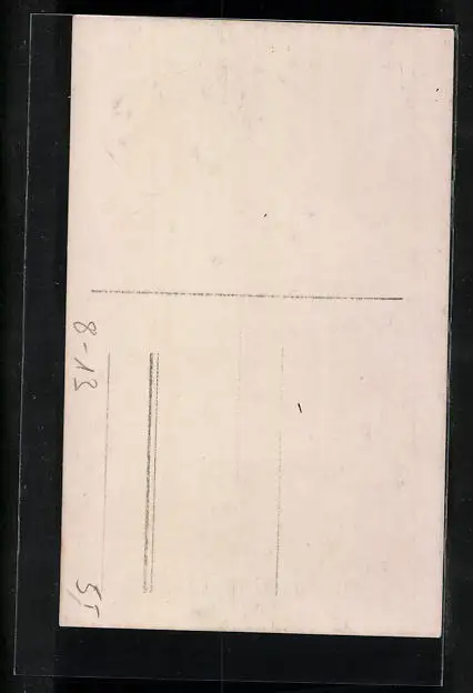 Personenbezogene Daten auf der Rückseite der Karte wurden durch blauen Textmarker unkenntlich gemacht. Die blauen Stellen sind auf die Vorderseite durchgeweicht und wirken sich negativ auf das Postkartenfoto aus