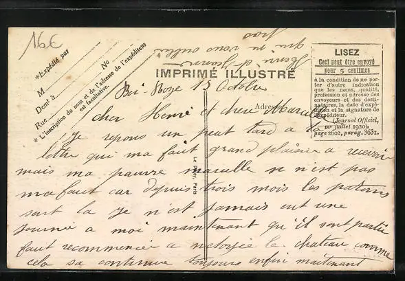 Personenbezogene Daten auf der Rückseite der Karte wurden durch blauen Textmarker unkenntlich gemacht. Die blauen Stellen sind auf die Vorderseite durchgeweicht und wirken sich negativ auf das Postkartenfoto aus