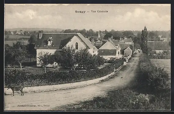 AK Sougy, Vue Générale avec maisons et route de campagne