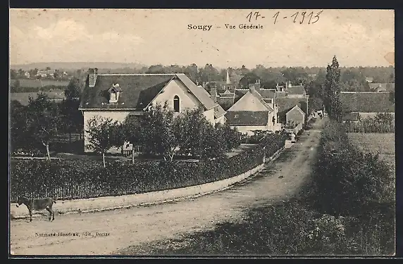 AK Sougy, Vue Générale du Village avec Route et Maisons
