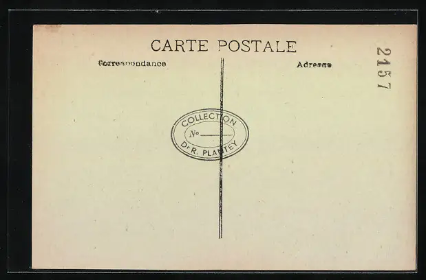 Personenbezogene Daten auf der Rückseite der Karte wurden durch blauen Textmarker unkenntlich gemacht. Die blauen Stellen sind auf die Vorderseite durchgeweicht und wirken sich negativ auf das Postkartenfoto aus