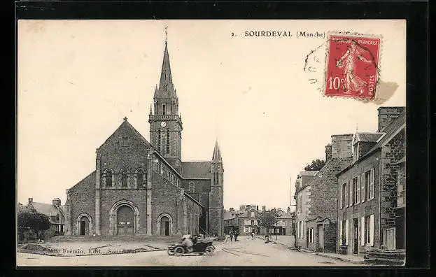 AK Sourdeval, Blick auf eine Kirche
