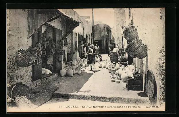 AK Sousse, La Rue Halfouine (Marchands de Poteries)
