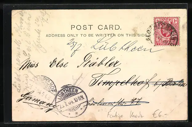 alte Ansichtskarte, gelaufen 1904, Eckknick oben re., guter Zustand