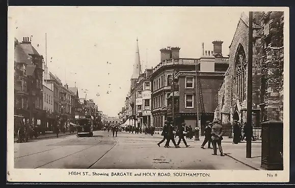 AK Southampton, Tramway on High Street, showing Bargate and Holy Road