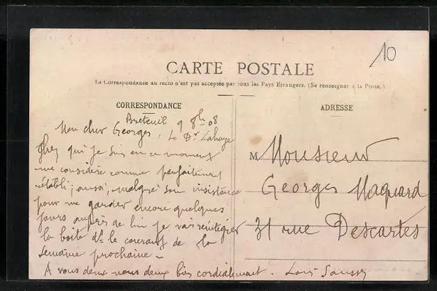 Personenbezogene Daten auf der Rückseite der Karte wurden durch blauen Textmarker unkenntlich gemacht. Die blauen Stellen sind auf die Vorderseite durchgeweicht und wirken sich negativ auf das Postkartenfoto aus