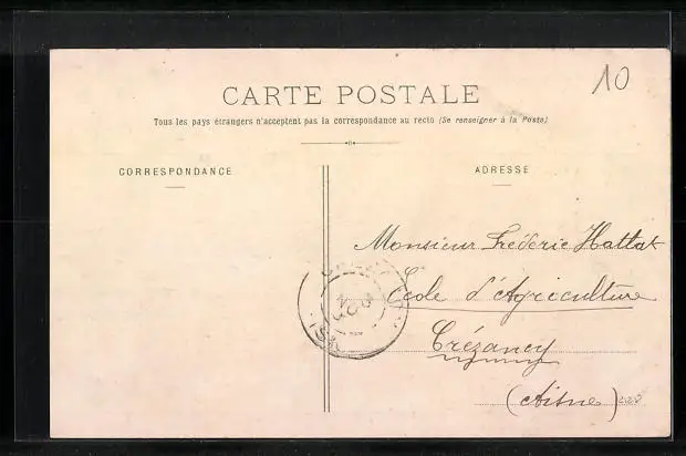 Personenbezogene Daten auf der Rückseite der Karte wurden durch blauen Textmarker unkenntlich gemacht. Die blauen Stellen sind auf die Vorderseite durchgeweicht und wirken sich negativ auf das Postkartenfoto aus