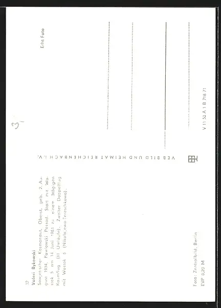 AK Sowjetischer Kosmonaut Oberst Valeri Bykowski, Wostok 5