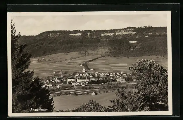 AK Spaichingen, Blick vom Wald auf die Stadt im Tal