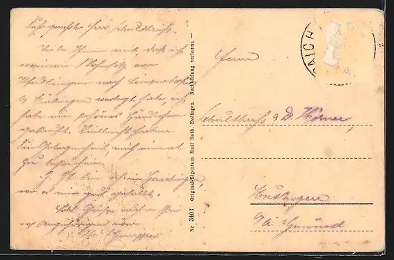alte Ansichtskarte, gelaufen, Briefmarke entfernt, Eckknicke li. unten u. re. oben, Bugspur oben mittig, guter Zustand