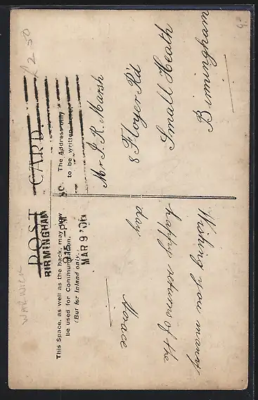 alte Ansichtskarte, gelaufen, Briefmarke entfernt, guter Zustand