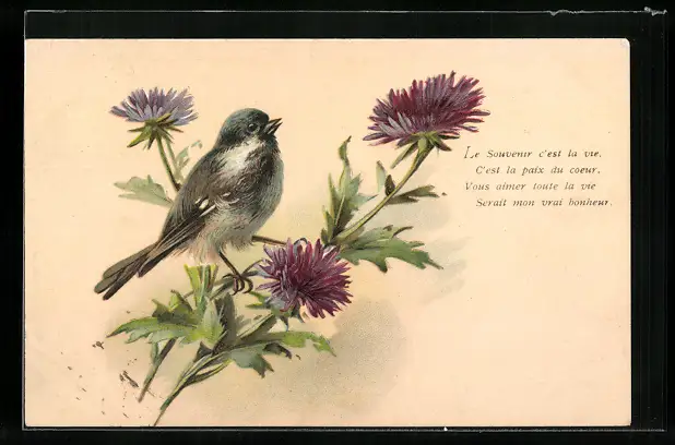 AK Spatz auf einer Blume