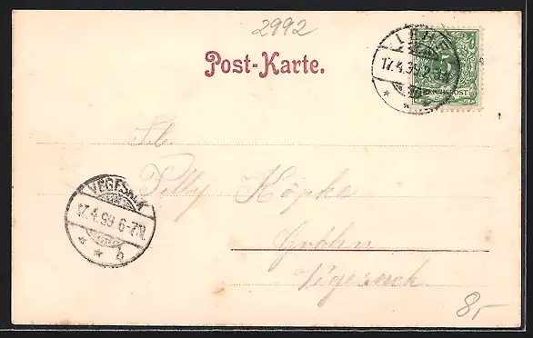 alte Ansichtskarte, gelaufen 1899, guter Zustand
