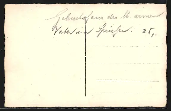 Personenbezogene Daten auf der Rückseite der Karte wurden durch blauen Textmarker unkenntlich gemacht. Die blauen Stellen sind auf die Vorderseite durchgeweicht und wirken sich negativ auf das Postkartenfoto aus