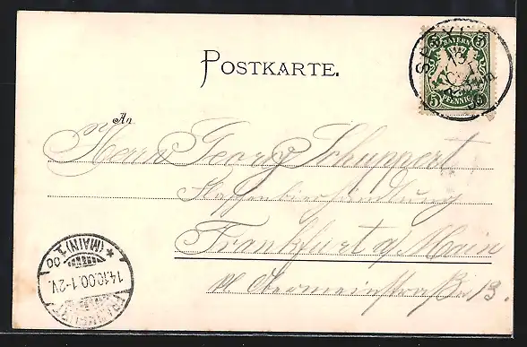alte Ansichtskarte, gelaufen 1900, guter Zustand