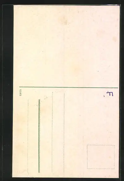 Personenbezogene Daten auf der Rückseite der Karte wurden durch blauen Textmarker unkenntlich gemacht. Die blauen Stellen sind auf die Vorderseite durchgeweicht und wirken sich negativ auf das Postkartenfoto aus