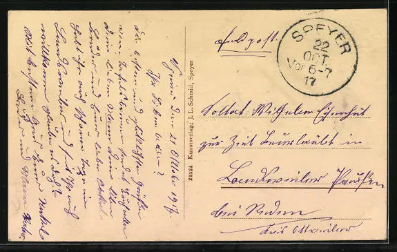 alte Ansichtskarte, gelaufen 1917 als Feldpost, Stempelspur, guter Zustand