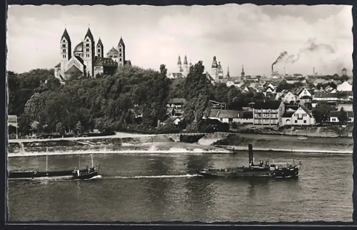 AK Speyer am Rhein, Dom, Rheinansicht, Dampfschiffe