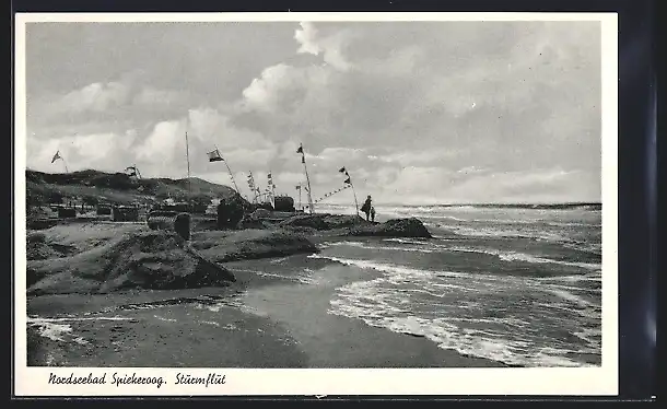 AK Spiekeroog, Nordseebad, Strand bei Sturmflut