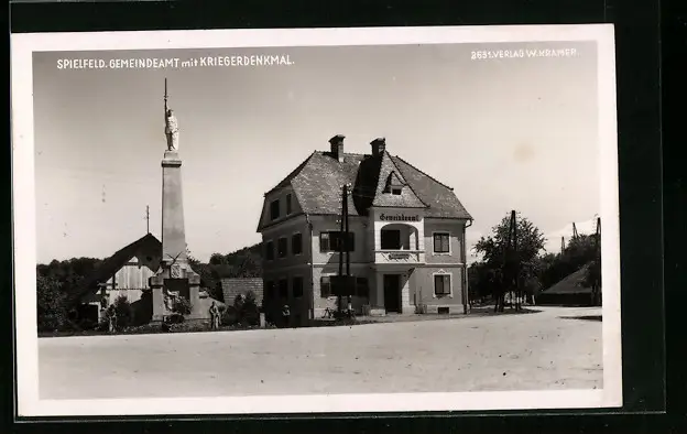 AK Spielfeld, Gemeindeamt mit Kriegerdenkmal