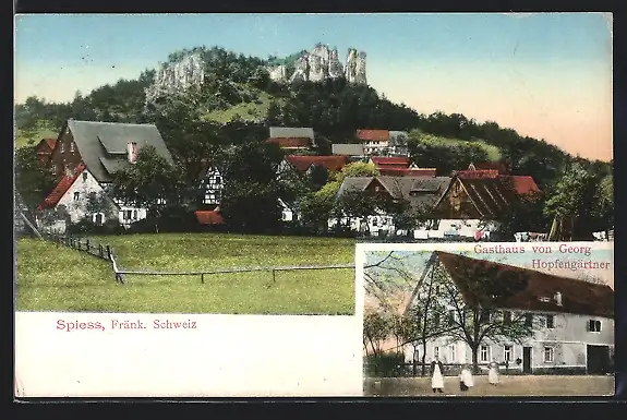 AK Spiess /Fränk. Schweiz, Gasthaus von Georg Hopfengärtner, Teilansicht