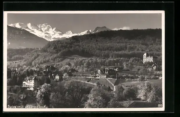 AK Spiez, Ortsansicht mit Blümlisalp