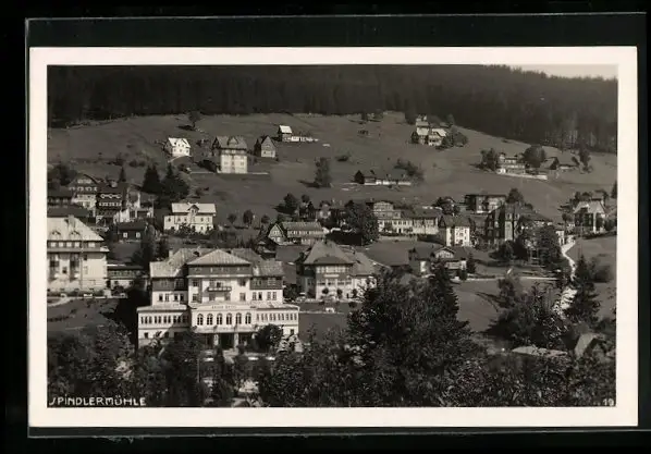 AK Spindlermühle, Ortsansicht aus der Vogelschau