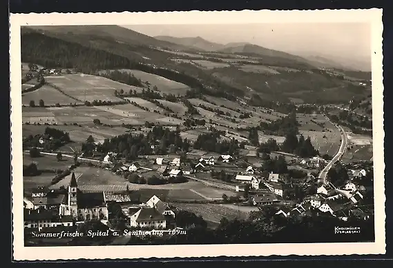AK Spital am Semmering, Totalansicht mit Landstrasse aus der Vogelschau