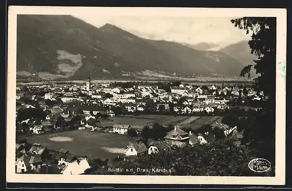 AK Spittal a. d. Drau, Ortsansicht hinter Zweigen
