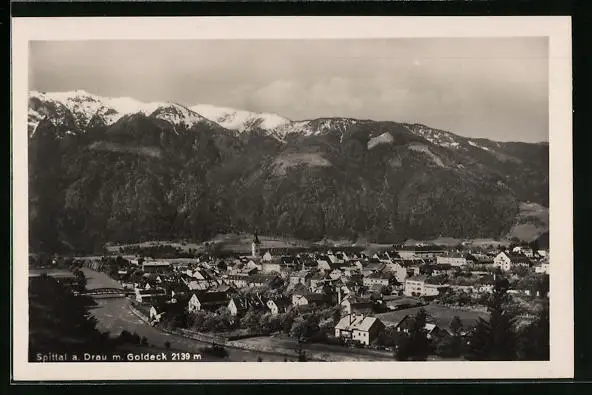 AK Spittal am Drau, Ortsansicht aus der Vogelschau mit Goldeck