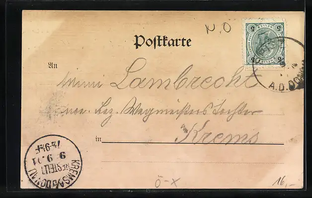 alte Ansichtskarte, gelaufen 1901, Stempelspur, guter Zustand