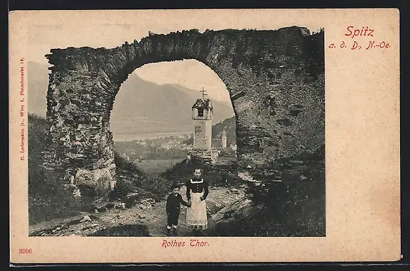 AK Spitz a. d. D., Rothes Thor mit Durchblick zum Turm