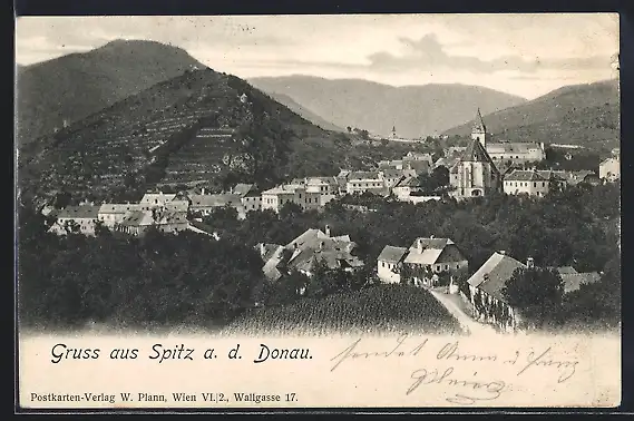 AK Spitz a. d. Donau, Totalansicht mit Kirchturm