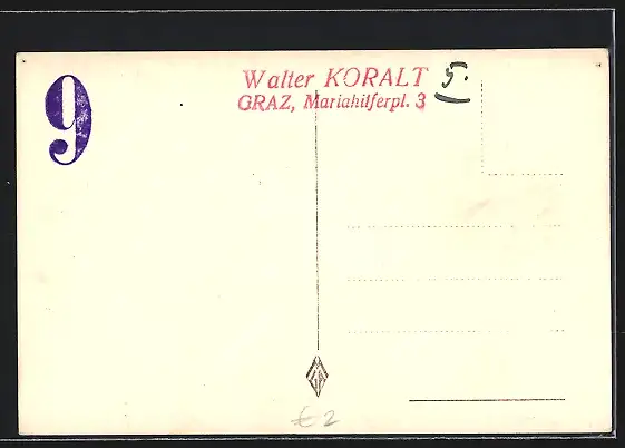 Personenbezogene Daten auf der Rückseite der Karte wurden durch blauen Textmarker unkenntlich gemacht. Die blauen Stellen sind auf die Vorderseite durchgeweicht und wirken sich negativ auf das Postkartenfoto aus
