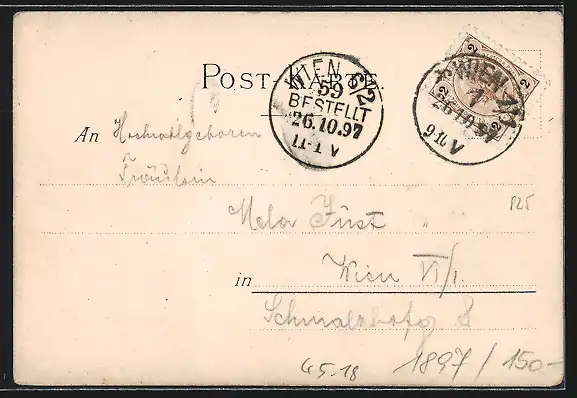 alte Ansichtskarte, gelaufen 1897, Eckknick li. unten, guter Zustand