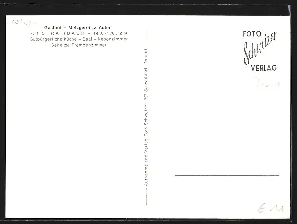 AK Spraitbach, Gasthof-Metzgerei zum Adler