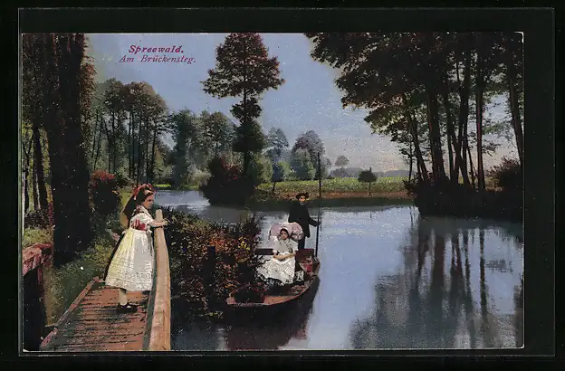 AK Spreewälder Mädchen in Tracht aufs Wasser blickend