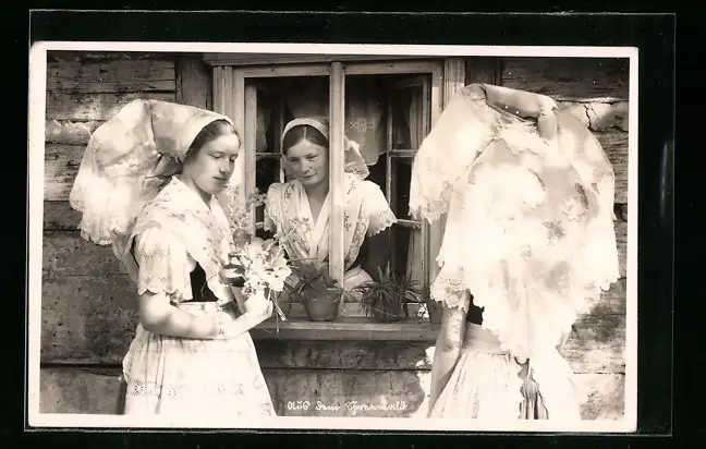 AK Spreewälderinnen in Tracht am Fenster