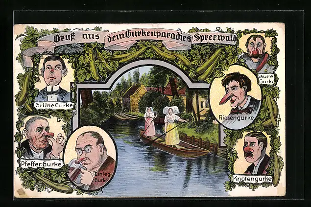 AK Spreewälderinnen in Tracht stehen in einem Kahn