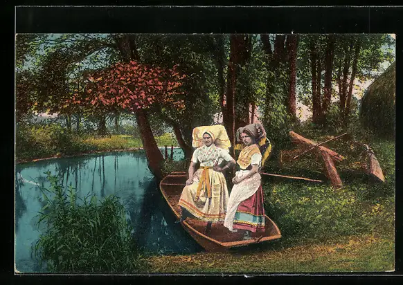 AK Spreewald, In Erwartung, Spreewälder Tracht