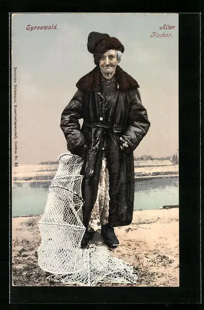 AK Spreewald, Spreewälder Tracht, Alter Fischer