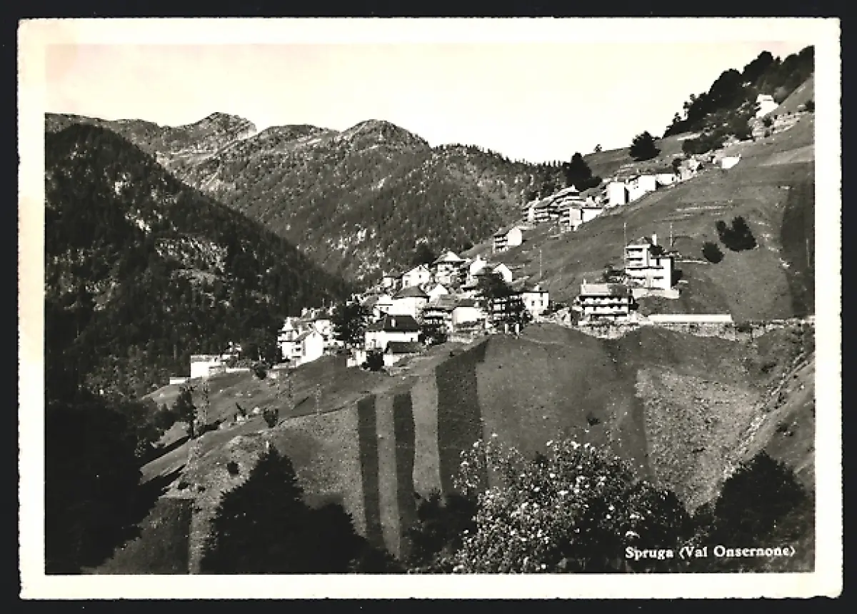 AK Spruga /Val Onsernone, Panorama mit Bergen